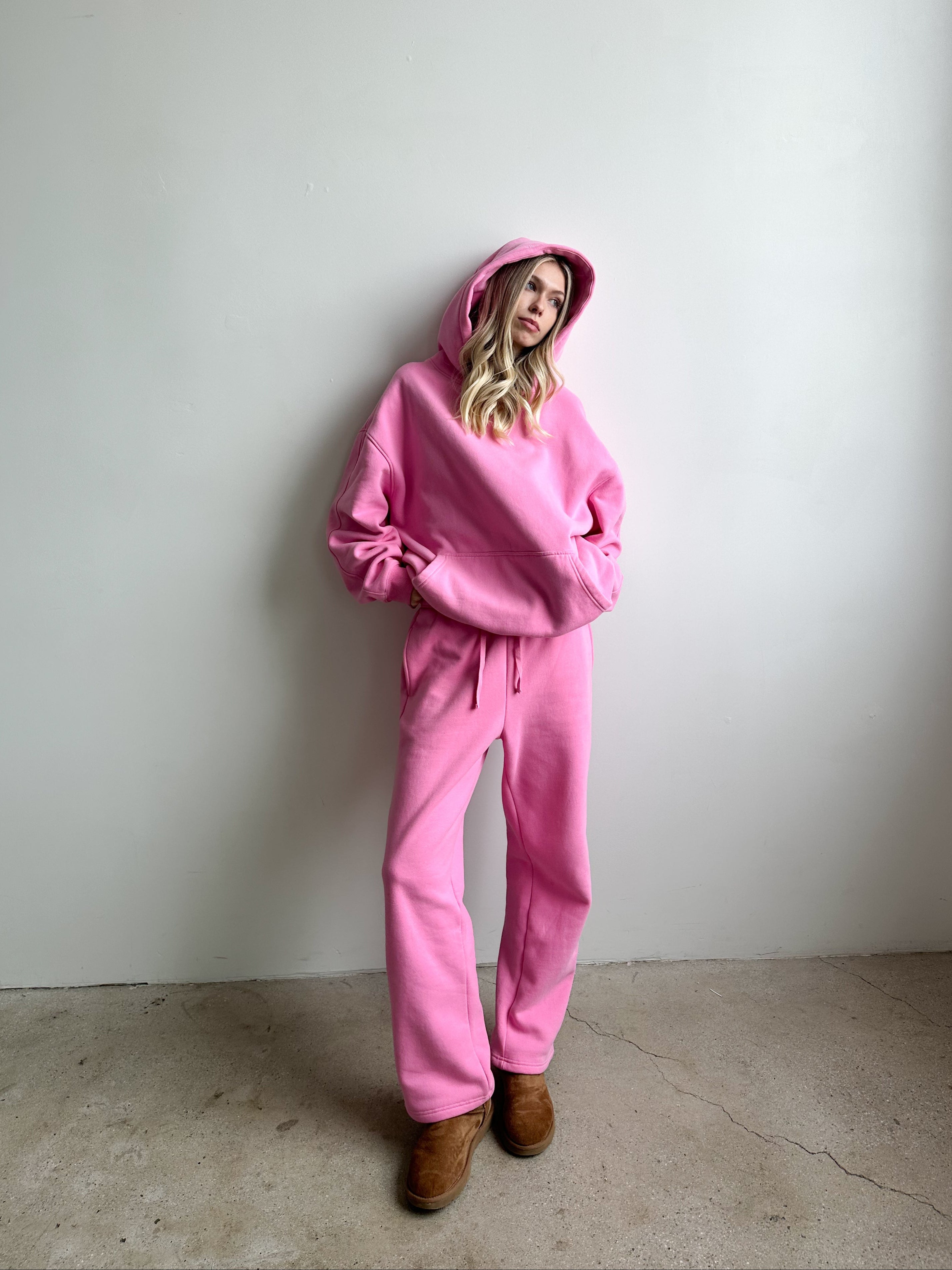 "I am absolutely obsessed with my pink sweat set! The fabric is super high quality and the oversize fit is perfect. I haven't been able to take it off since the day I got it!"